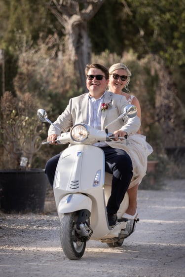 Coming from the Isle of Guernsey, Sarah and Jacques were drawn to Mallorca for its warm Spanish weather — and the freedom to explore the island on their beloved Vespas. Their celebration felt relaxed, joyful, and full of sunshine, perfectly reflecting their easygoing spirit.